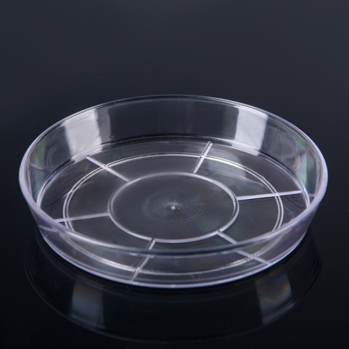 Пластиковый прозрачный поддон круглой формы применяется в качестве подставки под горшок. Такое решение защитит чистоту в доме от грязи, царапин и воды.