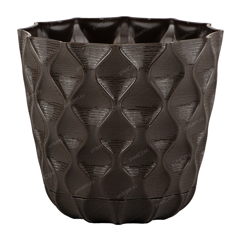 Горшок Wave 0,65л D115мм Горький шоколад с дренажной сеткой c поддоном (уп.12)