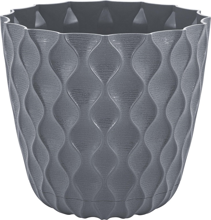 Умиротворяющая текстура бегущих волн и скрытая функциональная система дренажа с фиксируемым съёмным поддоном – это про коллекциюInGreen Wave. Сочетание матовых и глянцевых поверхностей и актуальная цветовая палитра добавят красок в любой интерьер. Такого объёма горшок хорошо подходит для средних растений. На дне горшков расположена дренажная сетка, обеспечивающая отвод лишней воды и циркуляцию воздуха. Поддон надёжно фиксируется к основанию горшка. Горшок Wave выполнен из прочного и лёгкого пластика, не подвержен деформации и внешним воздействиям, не выгорает на солнце, а также не царапается. За такими изделиями легко ухаживать, загрязнение достаточно протереть влажной тканью.Характеристики:• объём – 2,5 л;• диаметр – 175 мм;• цвет – вулканический серый.