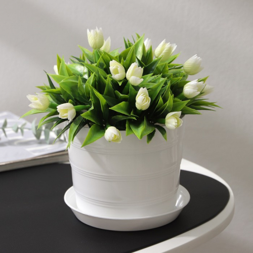Горшок для цветов с поддоном «ПластоС. Классик», 1.2 л, пластиковый, белый