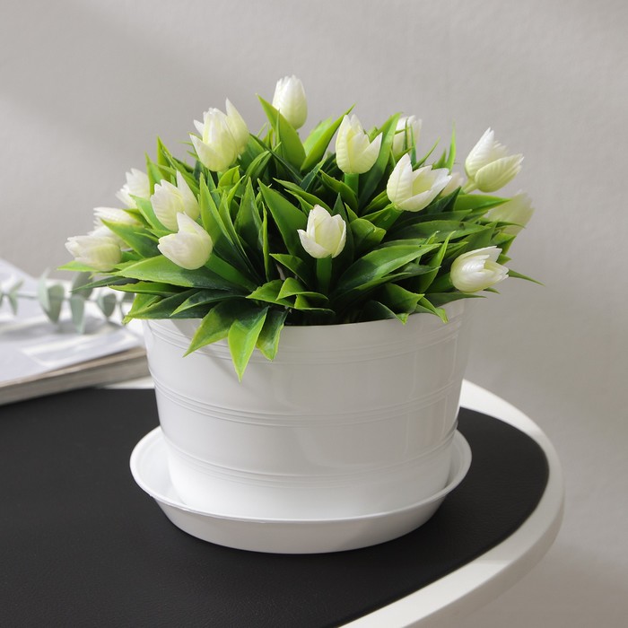 Горшок для цветов с поддоном «ПластоС. Классик», 1.4 л, пластиковый, белый