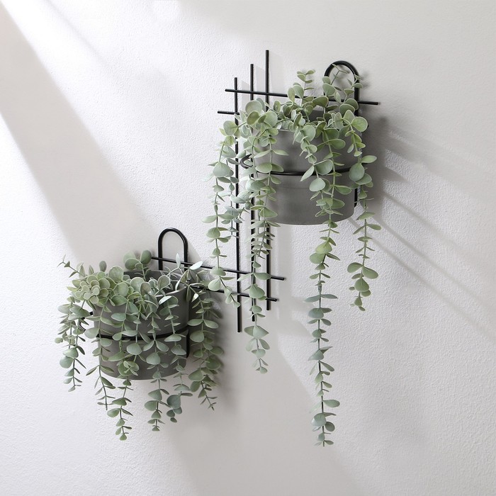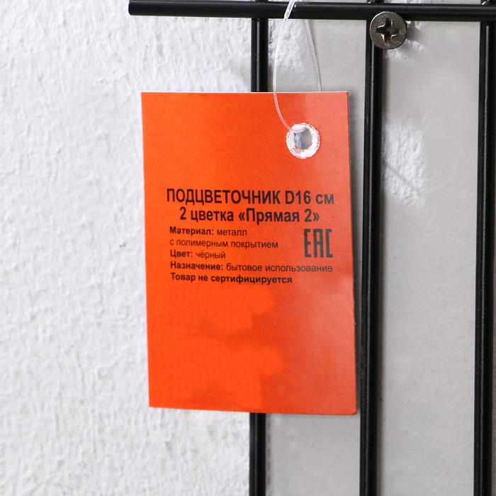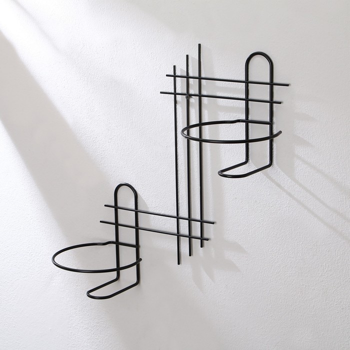 Подвес для кашпо, настенный, d=16 см, чёрный, «Прямая-2»