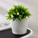 * Лёгкость и прочность: Кашпо мало весит и устойчиво к воздействию влаги. Пластик сохраняет форму и не деформируется со временем.