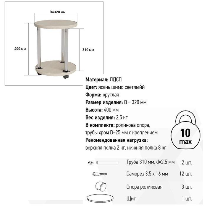 Полка для цветов «Персона – 5», на колёсиках, 320×320×400 мм, цвет ясень шимо светлый
