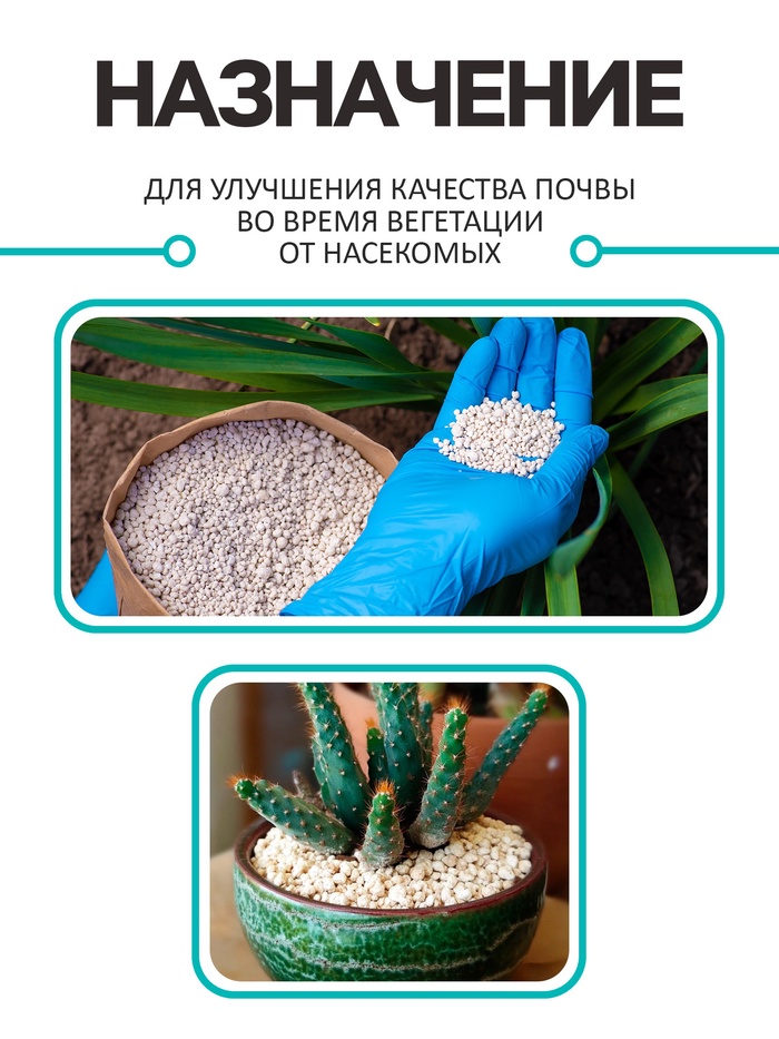 * Для повышения качества почвы нужно посыпать равномерно на поверхность и разрыхлить, расход 150-200 г на м2.