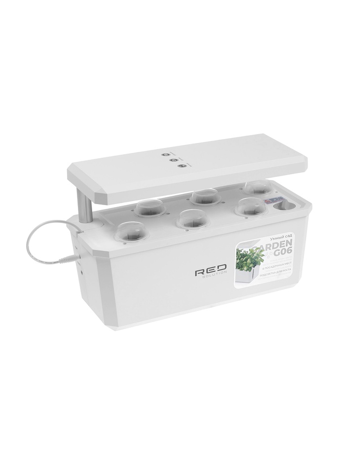 Умный сад RED SOLUTION G06, на 6 растений, 15 Вт, 2.5 л, до 40 см, сенсорное управление, белый