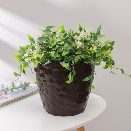 Горшок для цветов с поддоном «Камешки», 5 л, пластик, шоколадный