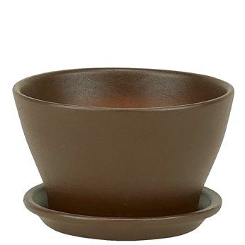 Миниатюрный цветочный горшок выполнен из керамики, в приятном коричневом цвете. Горшки из керамики – практичный вариант для растений. Внутренняя стенка горшка не обработана, что позволяет пропускать воздух и влагу, регулировать поступление тепла. В жарком и сухом микроклимате корневая система не высохнет, а в прохладном не замерзнет. В горшке предусмотрено дренажное отверстие, через которое излишки воды стекают в поддон предохраняя корни растения от избытка влаги и дальнейшего их загнивания. В комплект входит поддон из керамики покрытый эмалью в цвет основного изделия. Объем – 0,45 литров, диаметр – 12 см.
