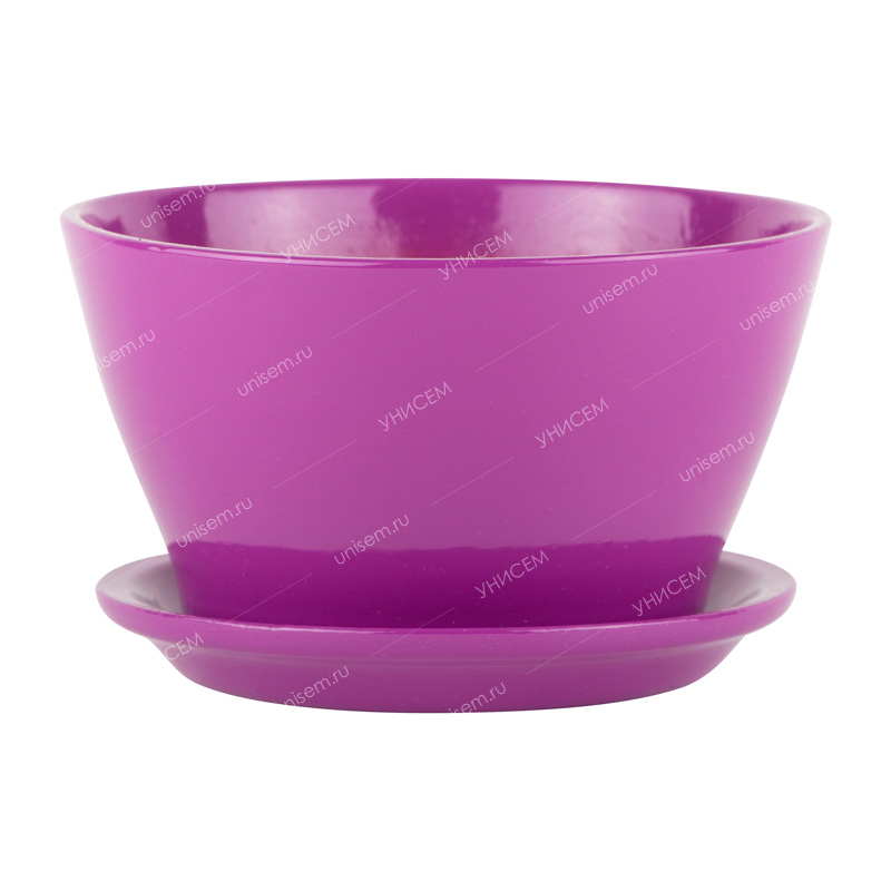 Цветочные горшки могут сыграть ключевую роль в деталях интерьера. Нередко именно они задают общее настроение в дизайне, одаряя его необходимой эмоциональной окраской. Самые распространенные варианты материала горшков – пластиковые и керамические. Главное достоинство керамических горшков – пористая структура материала, которая позволяет воздуху проходить и впитывать влагу. При выборе горшка ориентируйтесь на его размер и форму, чтобы вашему растению было в нём комфортно. Миниатюрный горшок выполнен в лиловом цвете, покрыт глянцевым покрытием. Объем горшка – 0,45 литров, диаметр – 12 см. В комплекте есть керамический поддон для стекания лишней жидкости.