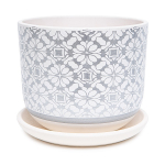Цветочные горшки могут сыграть ключевую роль в деталях интерьера. Нередко именно они задают общее настроение в дизайне, одаряя его необходимой эмоциональной окраской. Самые распространенные варианты материала горшков – пластиковые и керамические. Главное достоинство керамических горшков – пористая структура материала, которая позволяет воздуху проходить и впитывать влагу. При выборе горшка ориентируйтесь на его размер и форму, чтобы вашему растению было в нём комфортно. Цветочный горшок «Бутон белый» выполнен в белом цвете, покрыт глянцевым покрытием, имеет приятную фактуру. Поддон в комплекте помогает избежать проливания воды на поверхность, сохраняя чистоту и порядок в вашем интерьере.Преимущества такого горшка:• подходит для уличного и интерьерного озеленения;• поверхность горшка стойкая к воздействию УФ-лучам;• слабо нагревается на солнце;• пористая дышащая фактура;• натуральный материал.Характеристики:• объём – 2 л;• диаметр – 15 см;• цвет – белый;• в комплект входит поддон.