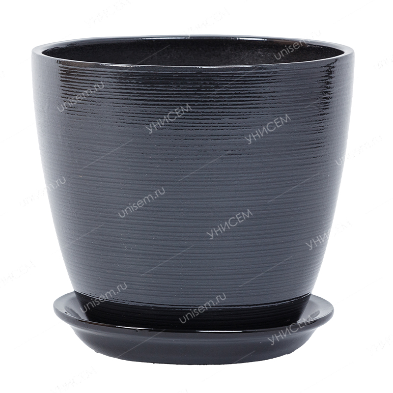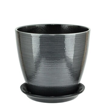 Горшок Бутон Глянец графит 1,7л 15см с поддоном (уп.6)