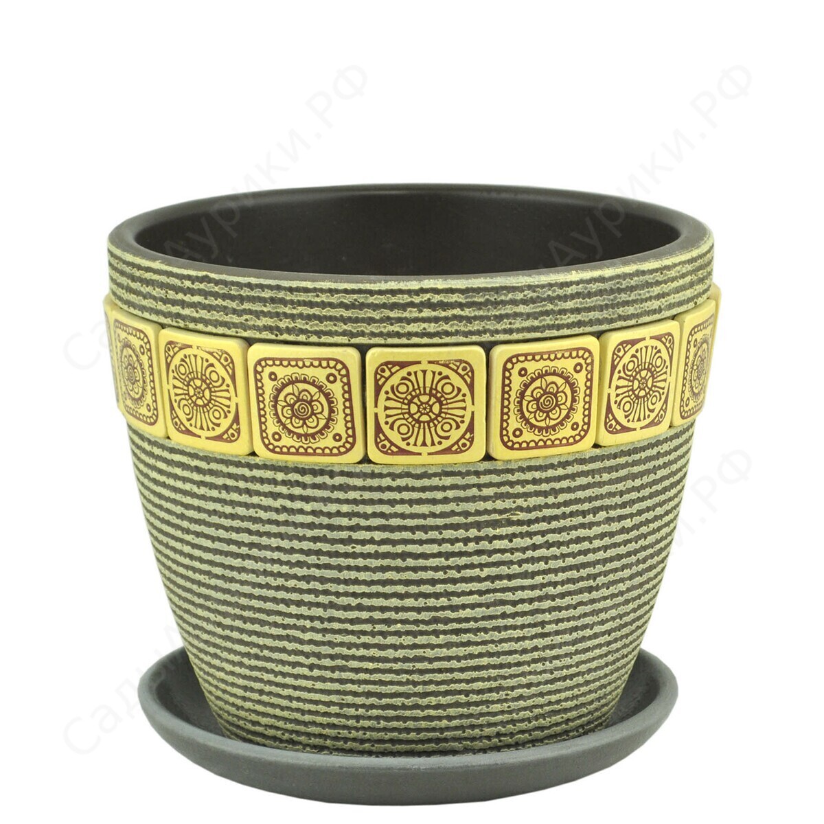Керамический горшок «Бутон Уют» темно-серого цвета прекрасно впишется как в домашний интерьер, так и в офисные помещения. Изготовлен из натуральной глины. Классическая форма горшка способствует правильному расположению корневой системы и равномерному распределению питательного субстрата по всему объему. Эмалированная поверхность облегчает уход за изделием и препятствует появлению разводов на внешней стороне ёмкости. В горшке предусмотрено дренажное отверстие, через которое излишки воды стекают в поддон, предохраняя корни растения от избытка влаги и дальнейшего их загнивания. Объем горшка – 2,15 литров, диаметр – 17 см, высота – 16 см.