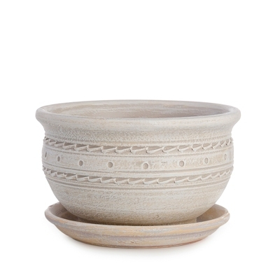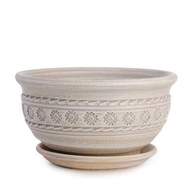 Горшок Миска Кружева капучино 1,5л d19h10см с поддоном, гончарка