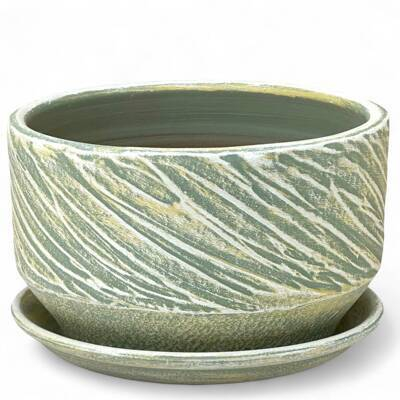 Горшок Плошка Безе мята 2,8л d21см с поддоном, гончарка