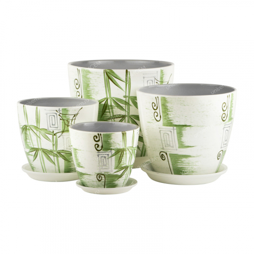 Цветочные горшки и кашпо из керамики – это классика, которая давно полюбилась многим любителям горшечных растений, ведь у них имеется ряд преимуществ. Керамика – экологически чистый и безопасный материал для выращивания растений. За счет пористой структуры глина позволяет дышать корневой системе, быстрее отводит излишнюю влагу, защищает растение от пересыхания. Материал не боится солнечных лучей, сохраняет цвет под воздействием солнечного цвета. Набор из 4-х горшков «Бутон Браслет» из керамики поставляется в комплекте с поддонами.