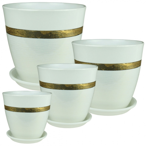 Набор горшков Бутон Поталь эстет золото/белый из 4-х 0,9\1,7\3,2\5л (уп.2)