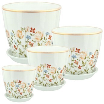 Набор керамических цветочных горшков «Бутон Прованс» – идеальное решение для тех, кто хочет добавить в свой интерьер нотку стиля и уюта. В наборе 4 горшка разного объёма. Они украшены красивым рисунком, который добавляет им индивидуальности и шарма. Разный объём в наборе позволяет выбрать оптимальный вариант для любого растения. Это может быть как небольшой суккулент, так и крупное комнатное растение. Изготовлены горшки из керамики. Благодаря такому материалу, горшки обеспечивают хорошую циркуляцию воздуха и влаги, что способствует здоровому росту растений. Они также устойчивы к воздействию солнечных лучей и перепадам температур, что делает их подходящими для использования как внутри помещения, так и на открытом воздухе. Такой набор цветочных горшков с рисунком станет прекрасным дополнением к любому интерьеру и хорошо скажется на развитии растения. Объём горшков – 1, 2, 3,8 и 5,4 литра.• Керамика – материал является древнейшим и существует уже не один век, а изделия из него востребованы во многих сферах жизни. Посуда и предметы декора из керамики с каждым годом только набирают популярность, и причин этому много – например, появление новых технологий изготовления и актуальность изделий ручной работы.