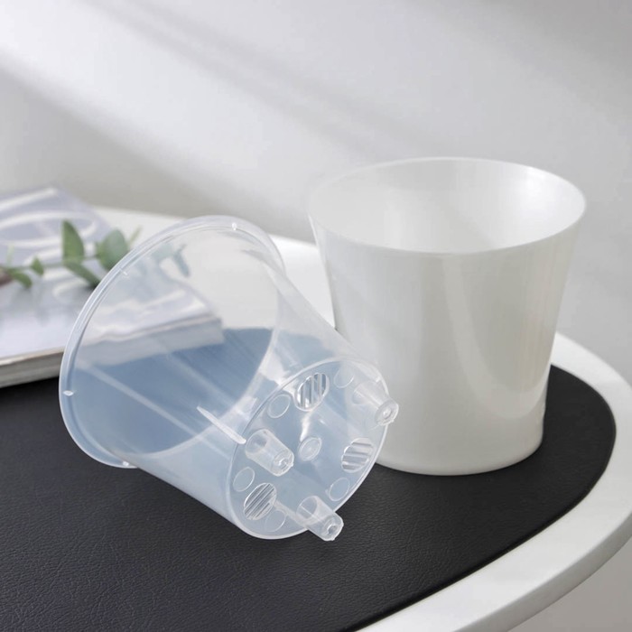Кашпо для цветов со вставкой «Арте», 600 мл, цвет жемчуг-прозрачный