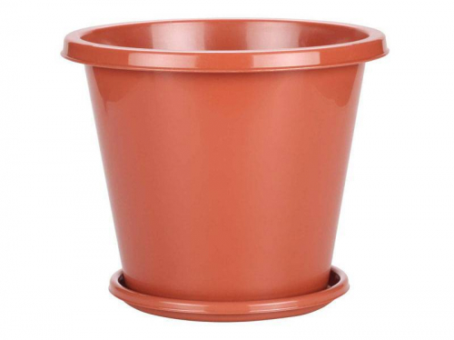 Пластиковый горшок цветочный Эконом с поддоном (коричневый)