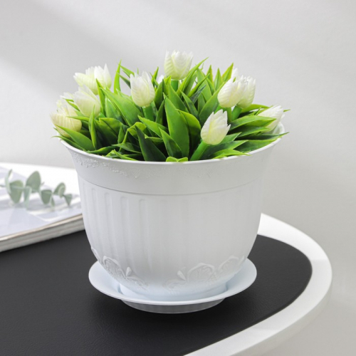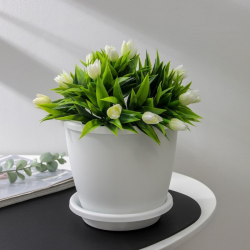 Горшок для цветов с поддоном СибПолимер «Ангара», 1.5 л, пластик, белый