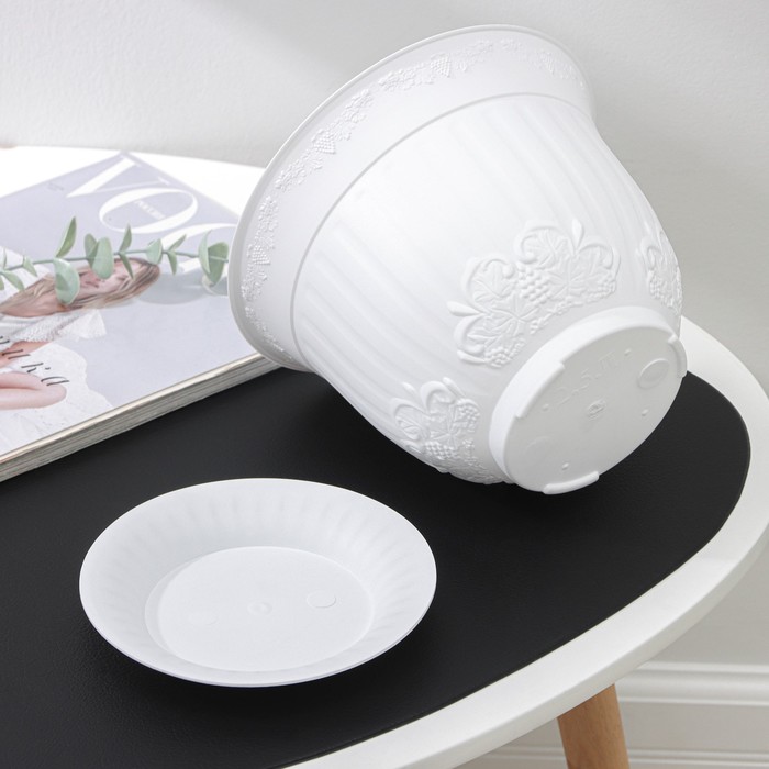 Горшок для цветов с поддоном СибПолимер «Ангара», 2.5 л, пластиковый, белый