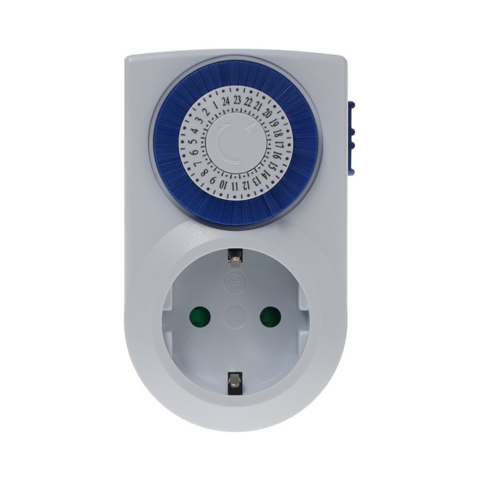 Розетка с таймером выполнена из прочного пластика, не подверженного внешним воздействиям. Тип таймера – механический. Розетка имеет 48 интервалов включений/отключений с периодичностью 30 минут.
