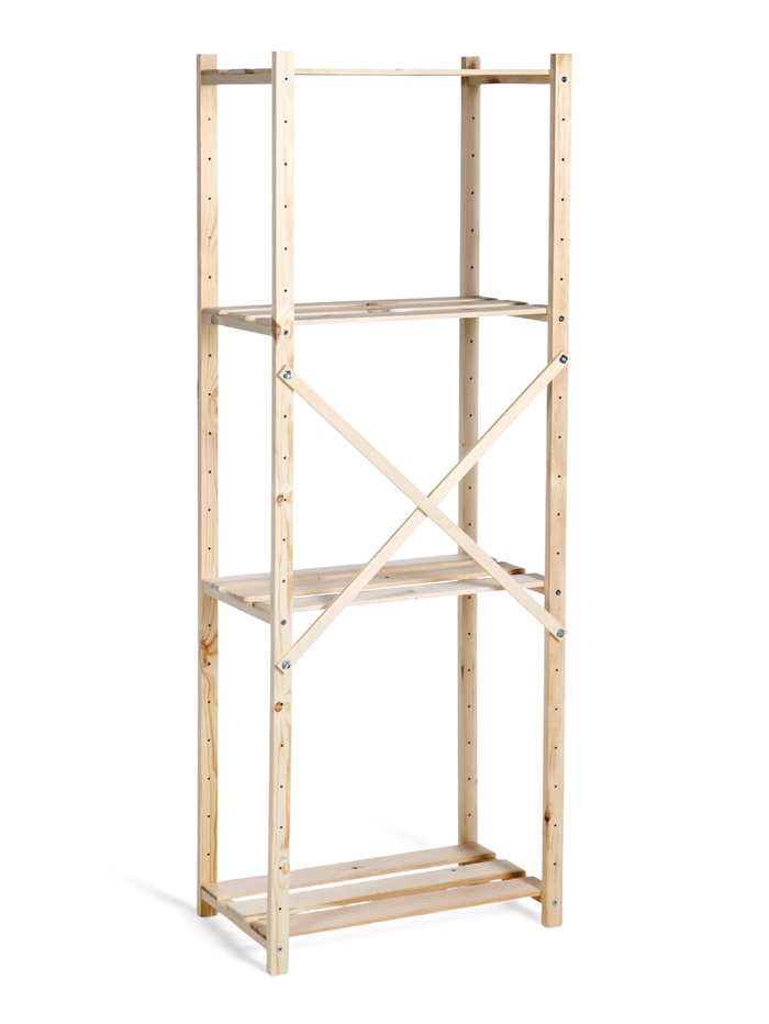 * Прочная конструкция из дерева: каркас и полки изготовлены из натурального дерева. Материал обеспечивает стабильность и долговечность, выдерживая значительный вес.