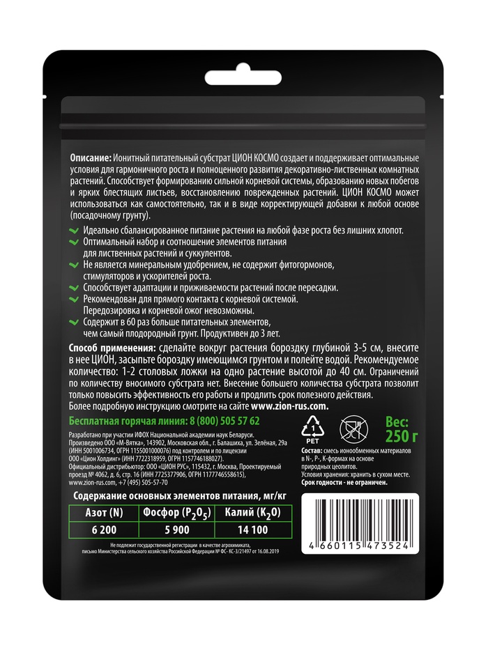 Субстрат ионитный, для комнатных растений, 250 г, ZION