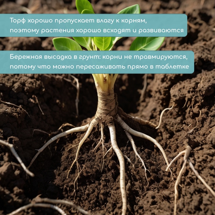* Торф пропускает воздух и влагу к корням, поэтому растения хорошо всходят и развиваются.