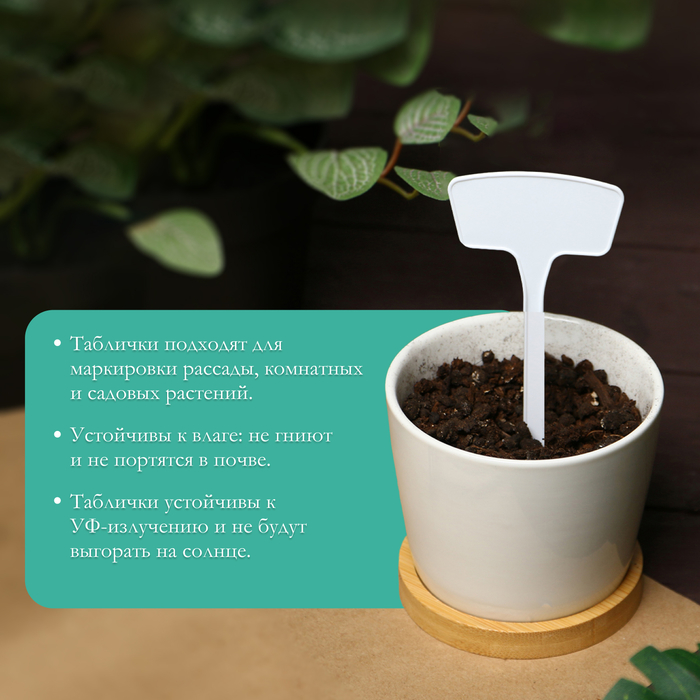 Таблички садовые, для маркировки растений, 20 см, набор 10 шт., пластик, белые, Greengo