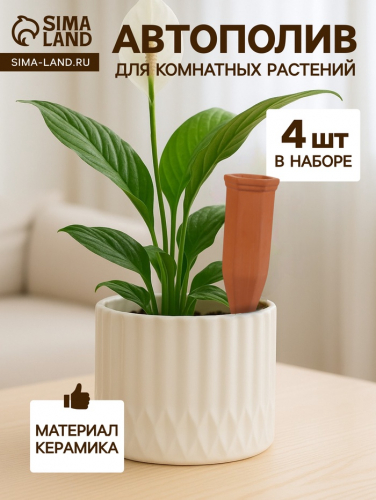 Автополив для комнатных растений «Терракот», 17.4×4.8 см, керамика, набор 4 шт.