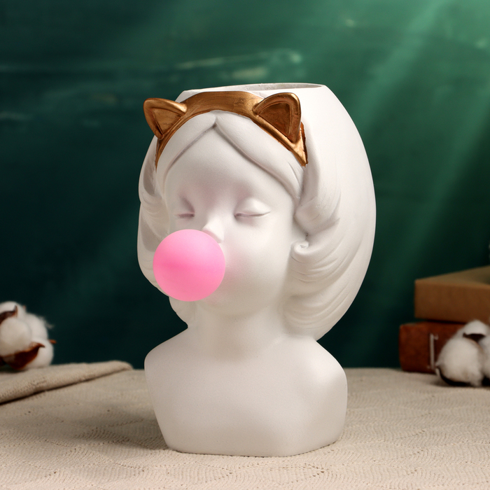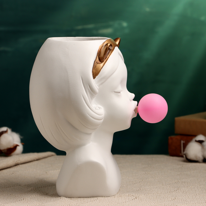 Декоративное кашпо для цветов «Девочка со жвачкой», 1.7 л, 23×22×16 см, полистоун, белое