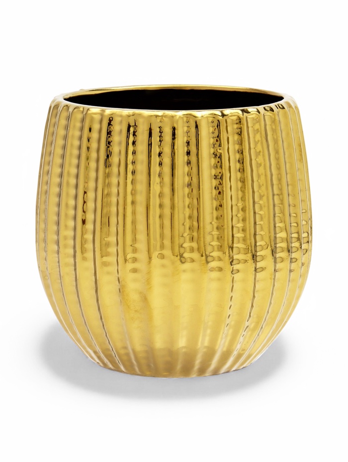 Декоративное кашпо «Кактус» — керамическое кашпо в форме суккулента. Золотистая поверхность создаёт эффект металлического покрытия. Объём 1,4 литра предназначен для размещения внутреннего горшка с растением.