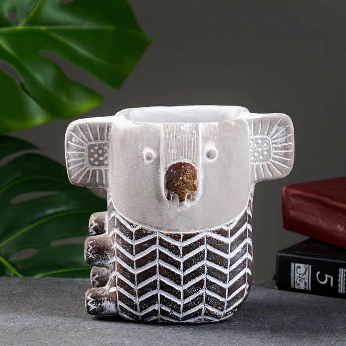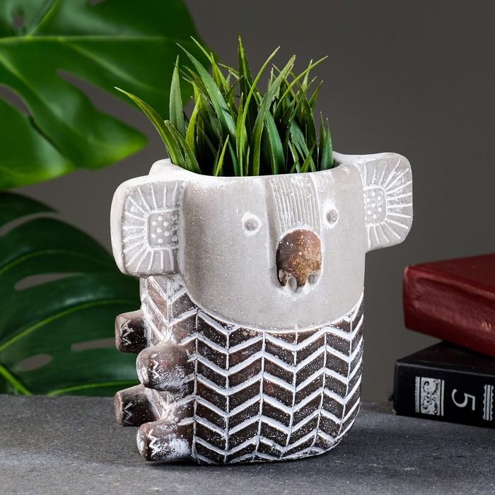 Декоративное кашпо для цветов «Коала», 500 мл, 15×10×15 см, керамика, серое