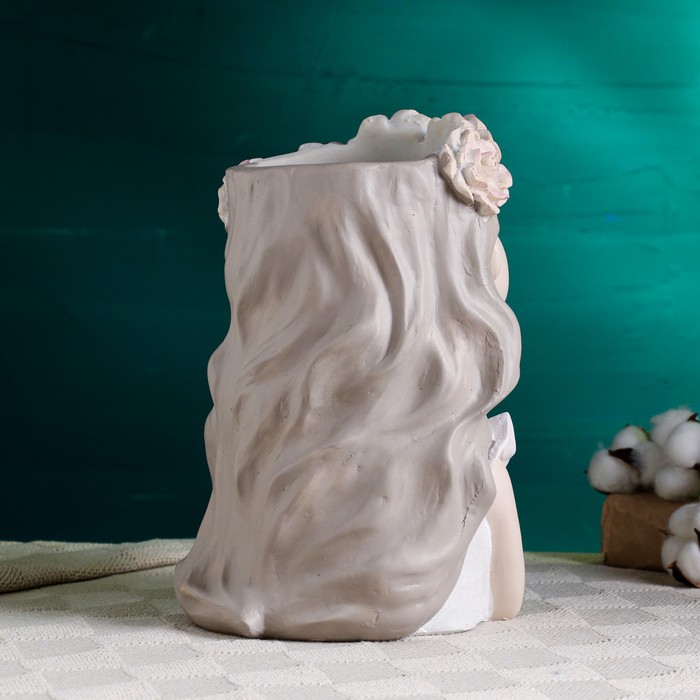 * Изящный дизайн: кашпо выполнено в виде задумчивой девушки с цветочным венком на голове, добавляя элемент утончённости в ваше пространство.