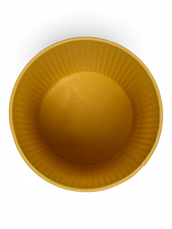 Особенности применения: изделие выполняет декоративную функцию — растение остаётся в основном горшке с дренажными отверстиями. Жёлтое «Ведёрко» становится акцентным элементом в светлых интерьерах, средиземноморском стиле и современных пространствах, где важны цветовые пятна.