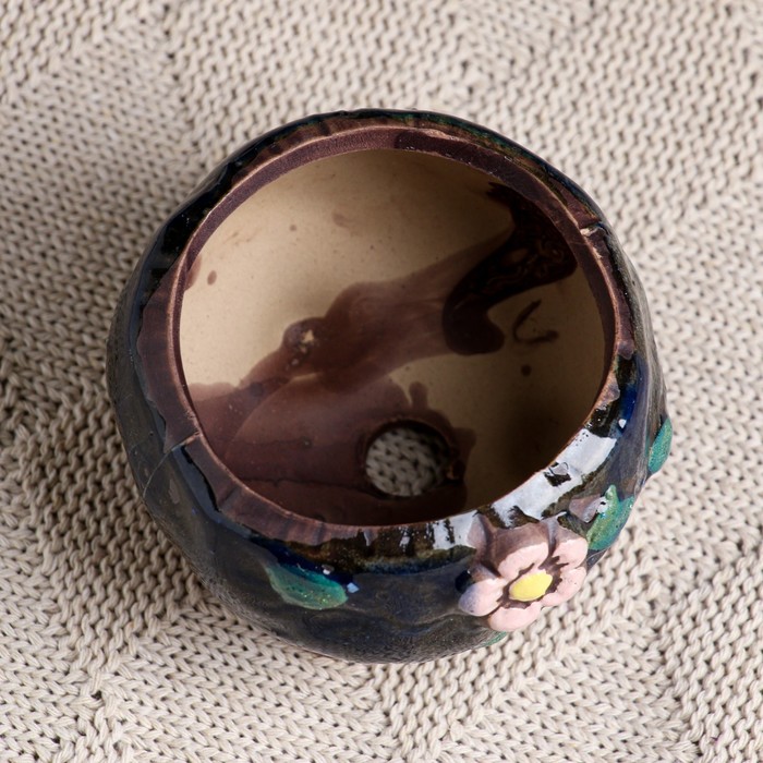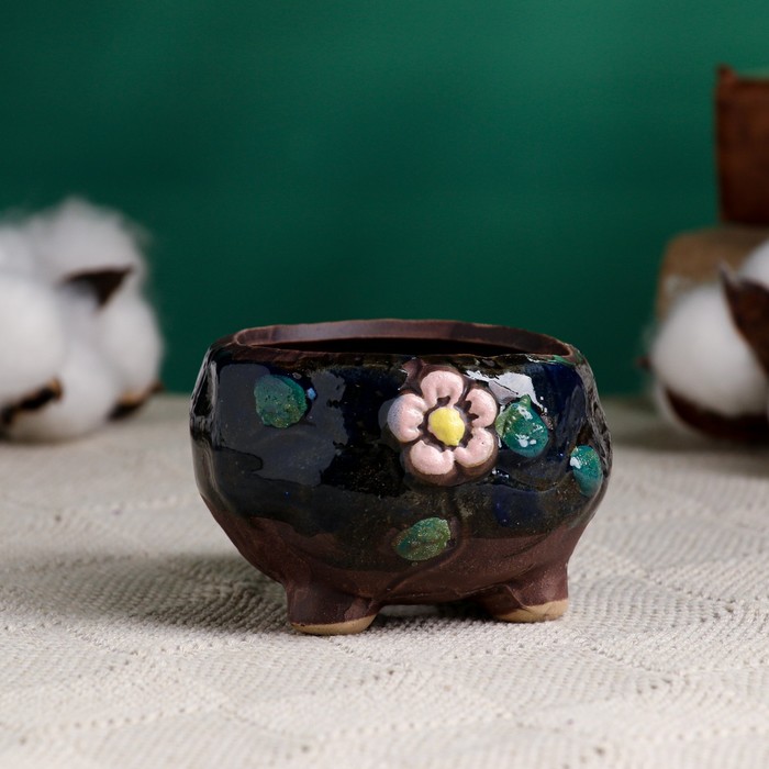 Декоративный горшок для цветов «Бочонок», 150 мл, 5×5×5 см, керамический, МИКС