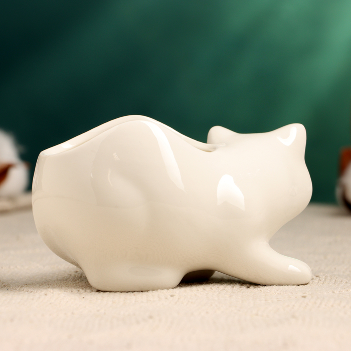 Декоративный горшок для цветов «Кошка», 150 мл, 10.8×6.5×6.5 см, керамический, белый