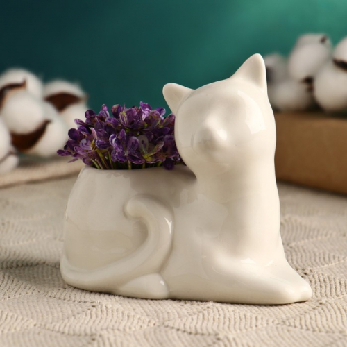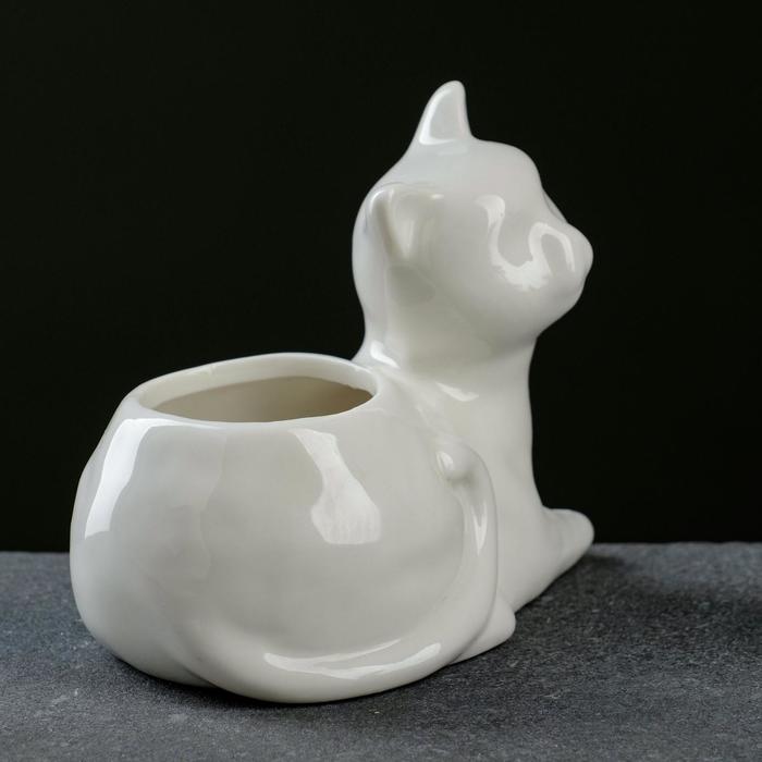 Декоративный горшок для цветов «Котёнок», 200 мл, 13×7.4×10.3 см, керамический, белый
