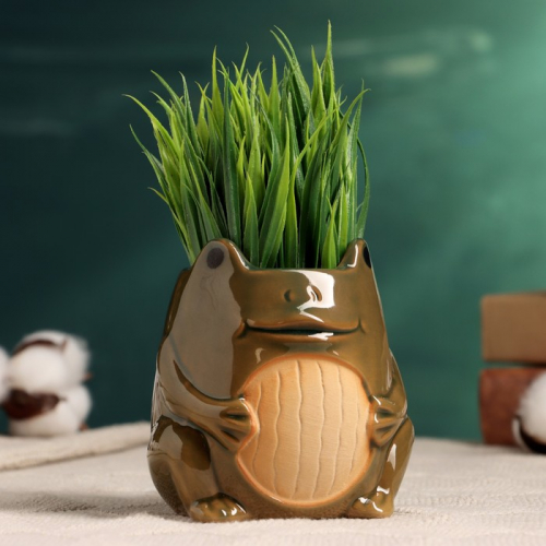 Декоративный горшок для цветов «Лягушка», 300 мл, 8.5×8×9 см, керамический
