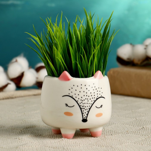 Декоративный горшок для цветов «Счастливый Лисёнок», керамический, 200 мл, 8×8×8 см, на ножках, белый