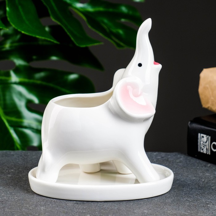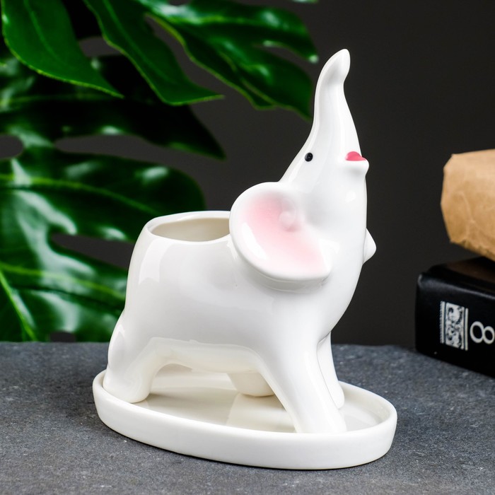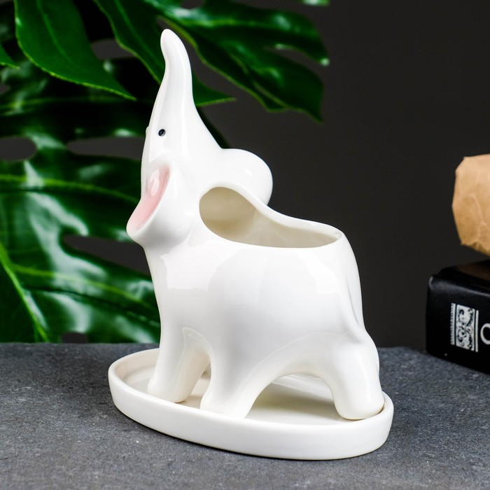 Декоративный горшок для цветов «Слон Гидеон», керамический, с поддоном, 180 мл, 14.5×7.5×12 см, белый