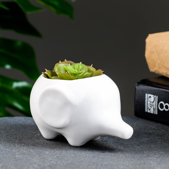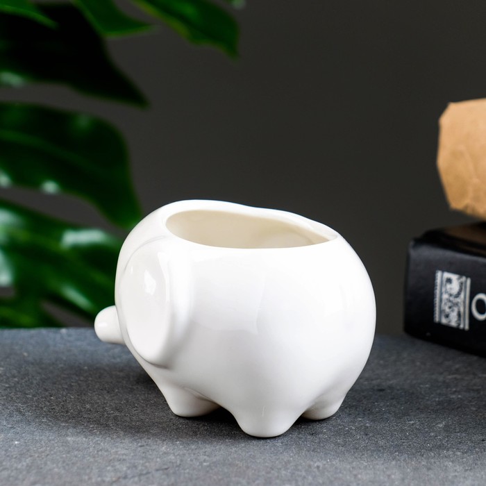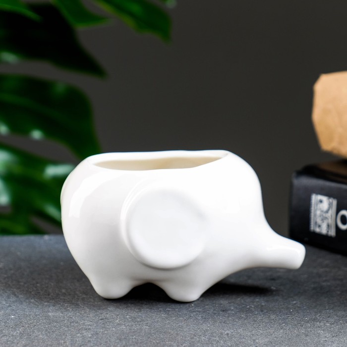 Декоративный горшок для цветов «Слоник Уайти», керамический, 150 мл, 10×7×6.5 см, белый