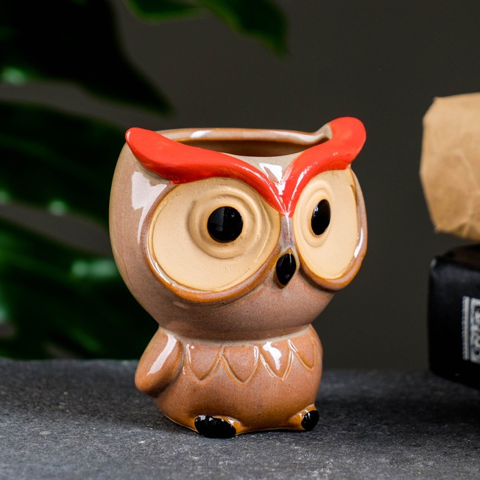 * Дизайн с совой: проработанный образ птицы создаёт тёплую атмосферу. Такой горшок становится милым акцентом на рабочем столе или полке.