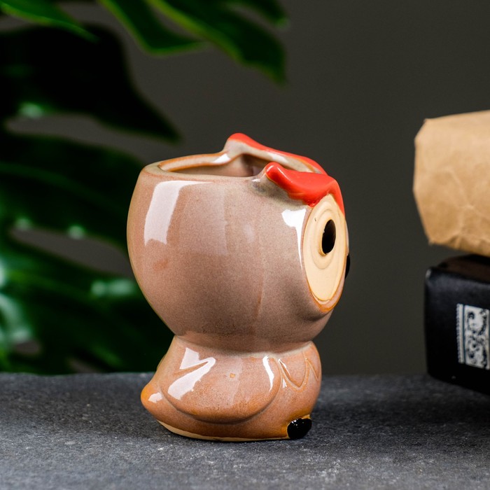 Керамический горшок «Совёнок», 0.15 л — это декоративный сосуд для миниатюрных растений. Фигурка совы придаёт композиции уютный и немного сказочный характер.