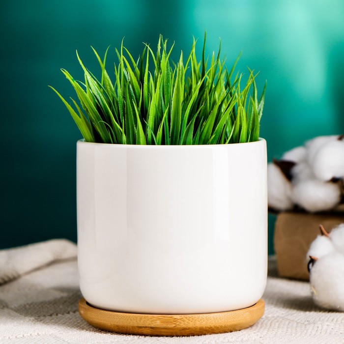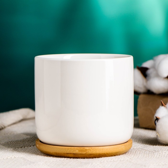 Горшок для цветов «Эко» керамический, 500 мл, 10×9.5 см, с деревянной подставкой, белый