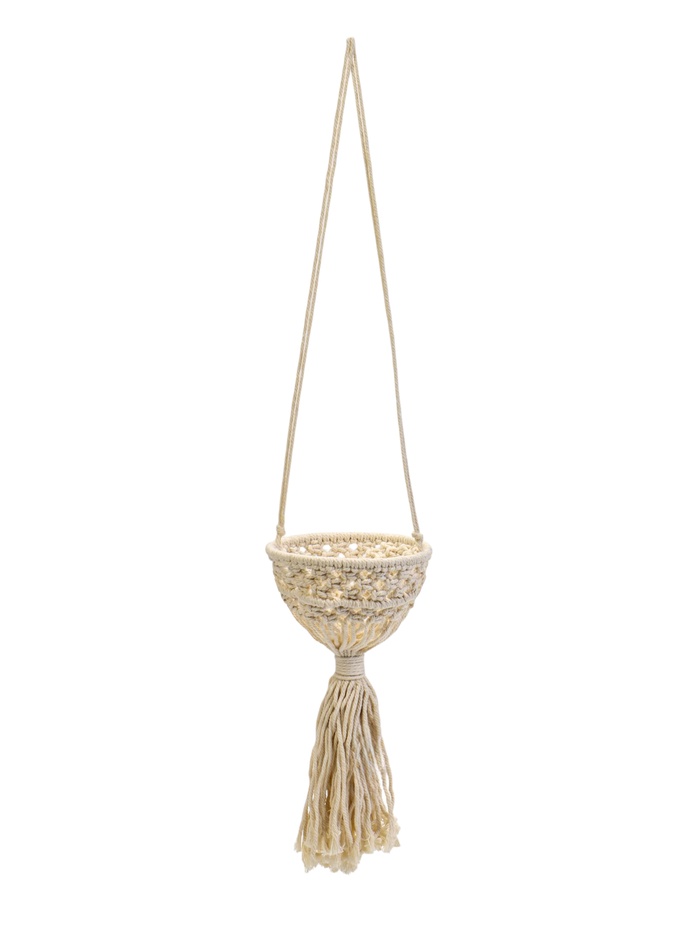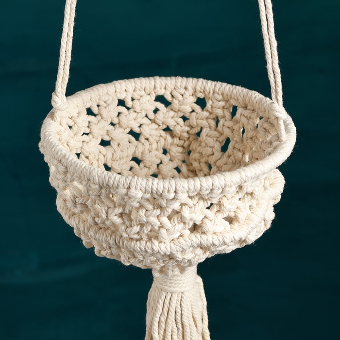Кашпо - макраме «Луна», 15×15×12 см, текстиль, подвесное, бежевое