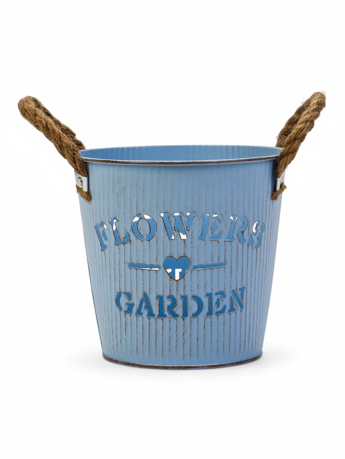Кашпо «Ведёрко цветочный сад», 13×13×12 см, голубое