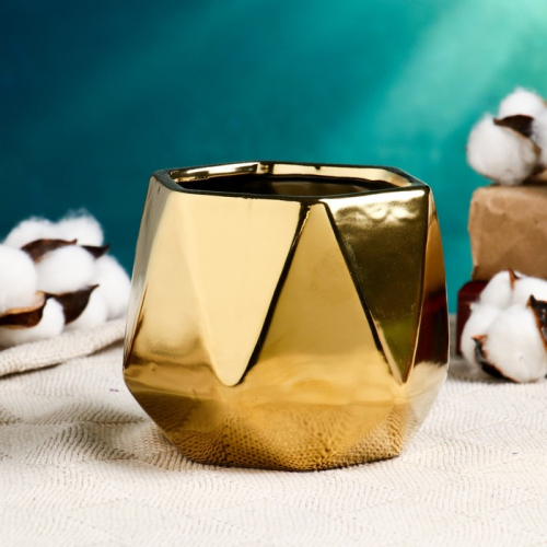 Кашпо «Золотой многогранник», 800 мл, керамика, золотистое