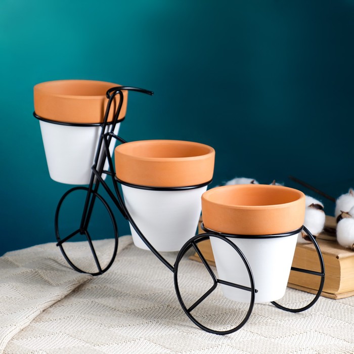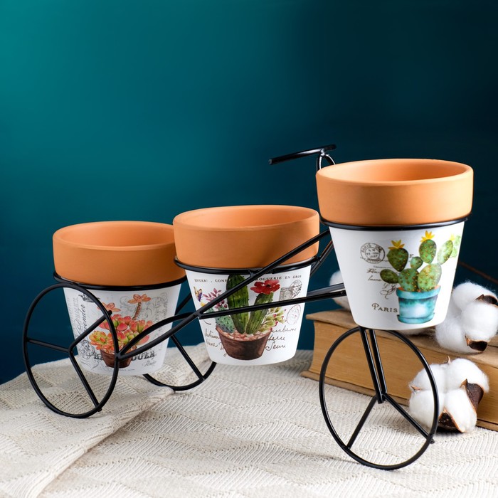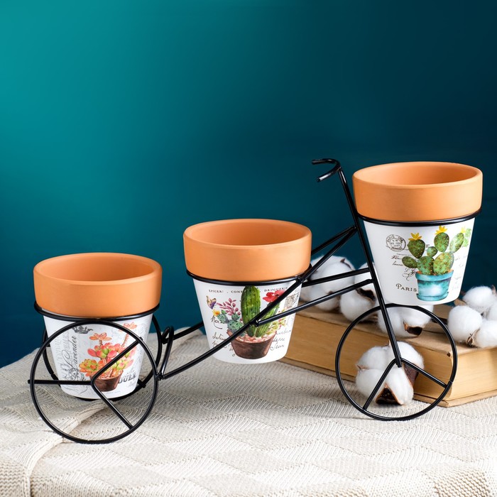 Набор фигурных кашпо для цветов «Велосипед», 300 мл, керамика, 3 шт.